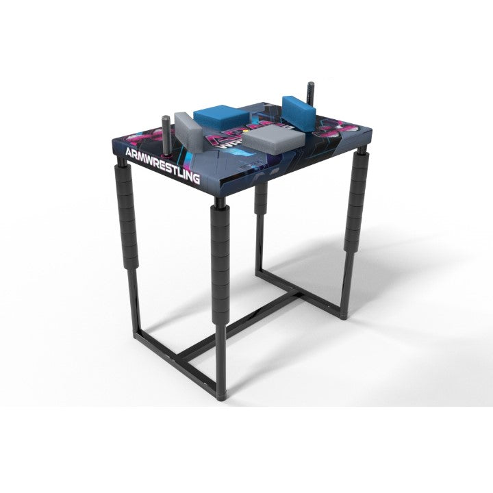 Precisely made, easy to transport with the possibility of further extension. The upholstery of the table has been made really carefully in order to eliminate chafes and bruises during long and tiring armwrestling fights.