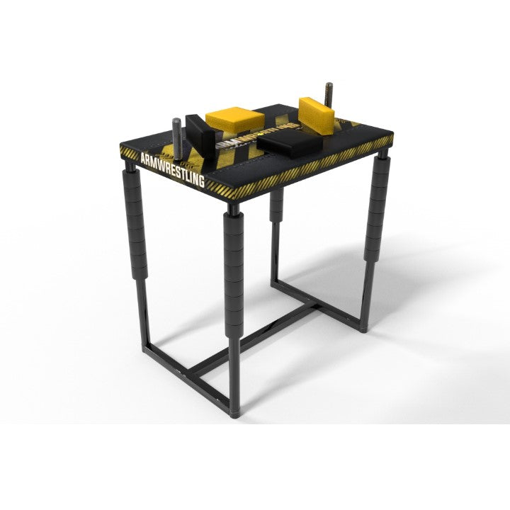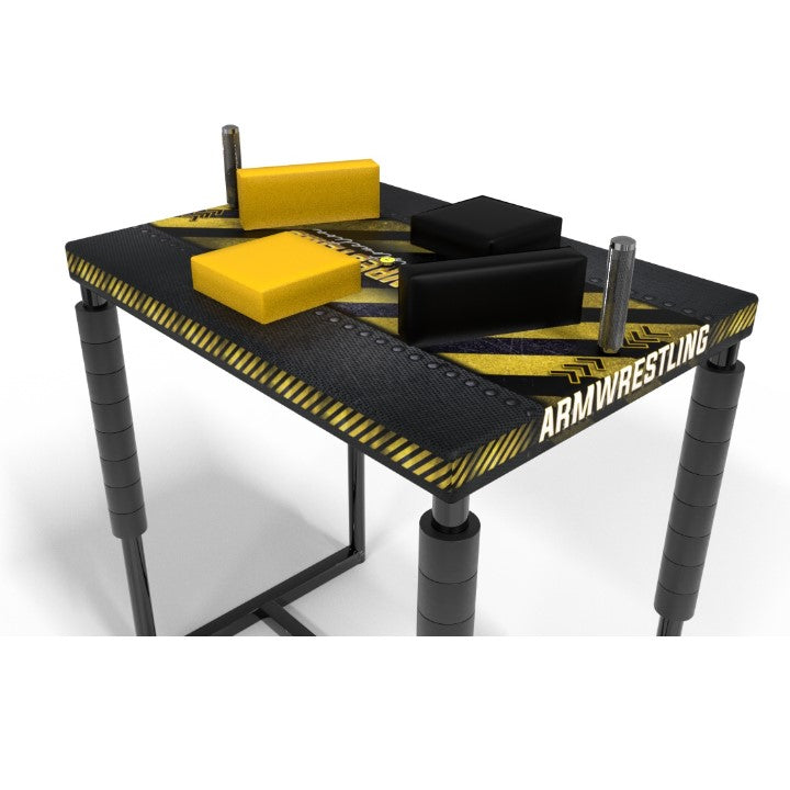 Precisely made, easy to transport with the possibility of further extension. The upholstery of the table has been made really carefully in order to eliminate chafes and bruises during long and tiring armwrestling fights.